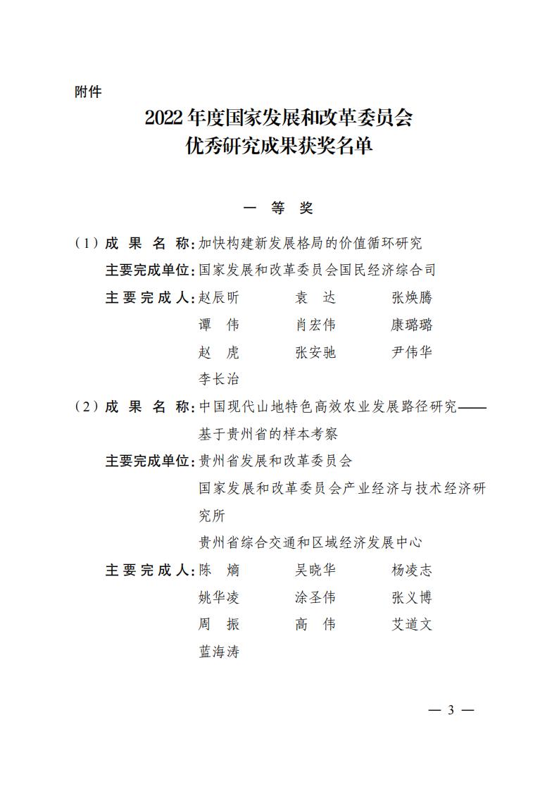 關(guān)于2022年度國家發(fā)展和改革委員會(huì)優(yōu)秀研究成果獲獎(jiǎng)名單的