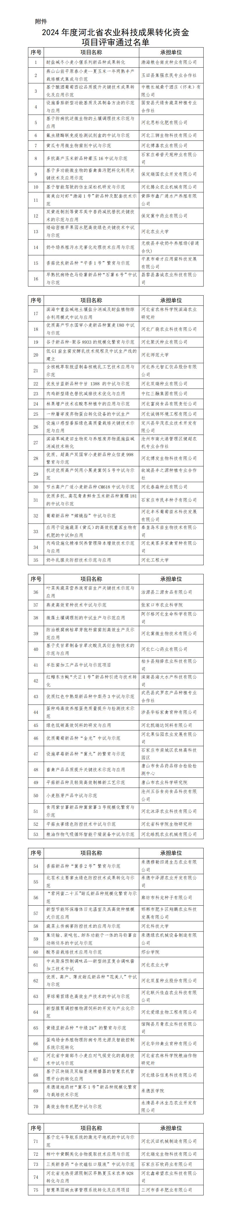 河北省科學(xué)技術(shù)廳關(guān)于2024年度河北省農(nóng)業(yè)科技成果轉(zhuǎn)化資金項(xiàng)目評(píng)審結(jié)果的公告根據(jù)《河北省農(nóng)業(yè)科技成果轉(zhuǎn)化與技術(shù)推廣服務(wù)財(cái)政補(bǔ)助資金管理