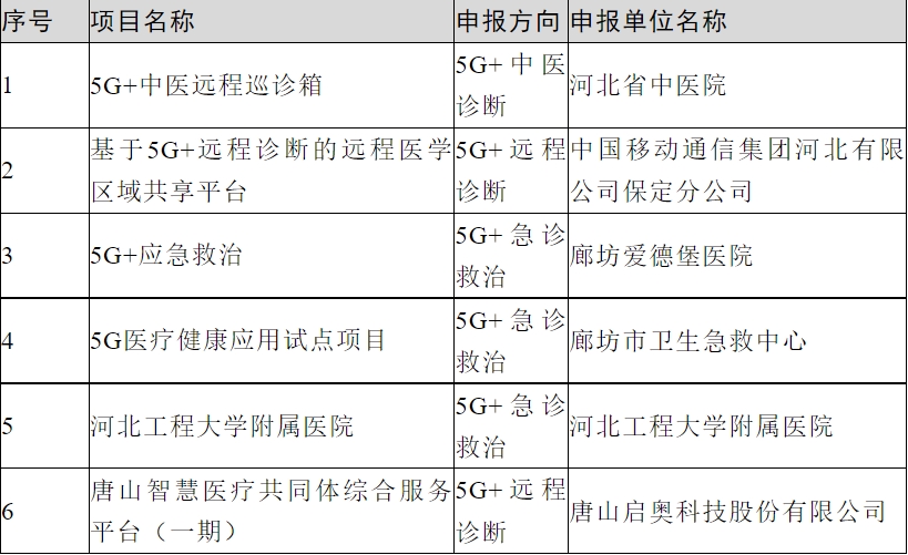 關(guān)于5G+醫(yī)療健康應(yīng)用試點項目驗收通過名單的公示