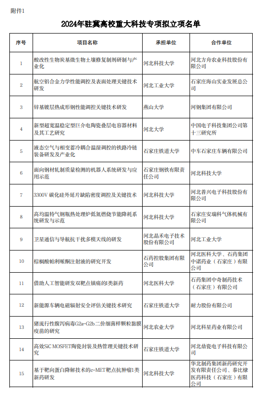 石家莊市科學(xué)技術(shù)局 關(guān)于對2024年駐冀高校與石家莊市產(chǎn)學(xué)