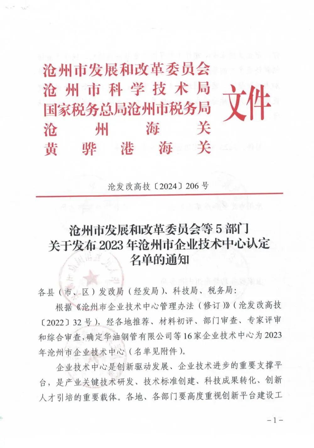關(guān)于發(fā)布2023年滄州市企業(yè)技術(shù)中心認定名單的通知