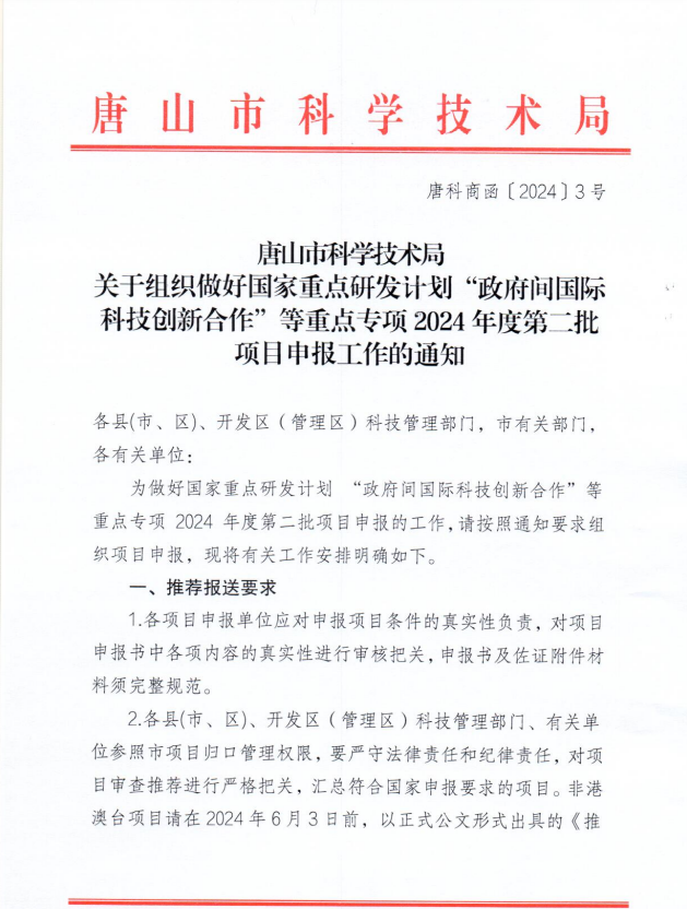 關于組織做好國家重點研發(fā)計劃“政府間國際科技創(chuàng)新合作”等重點專項2024年度第二批項目的通知