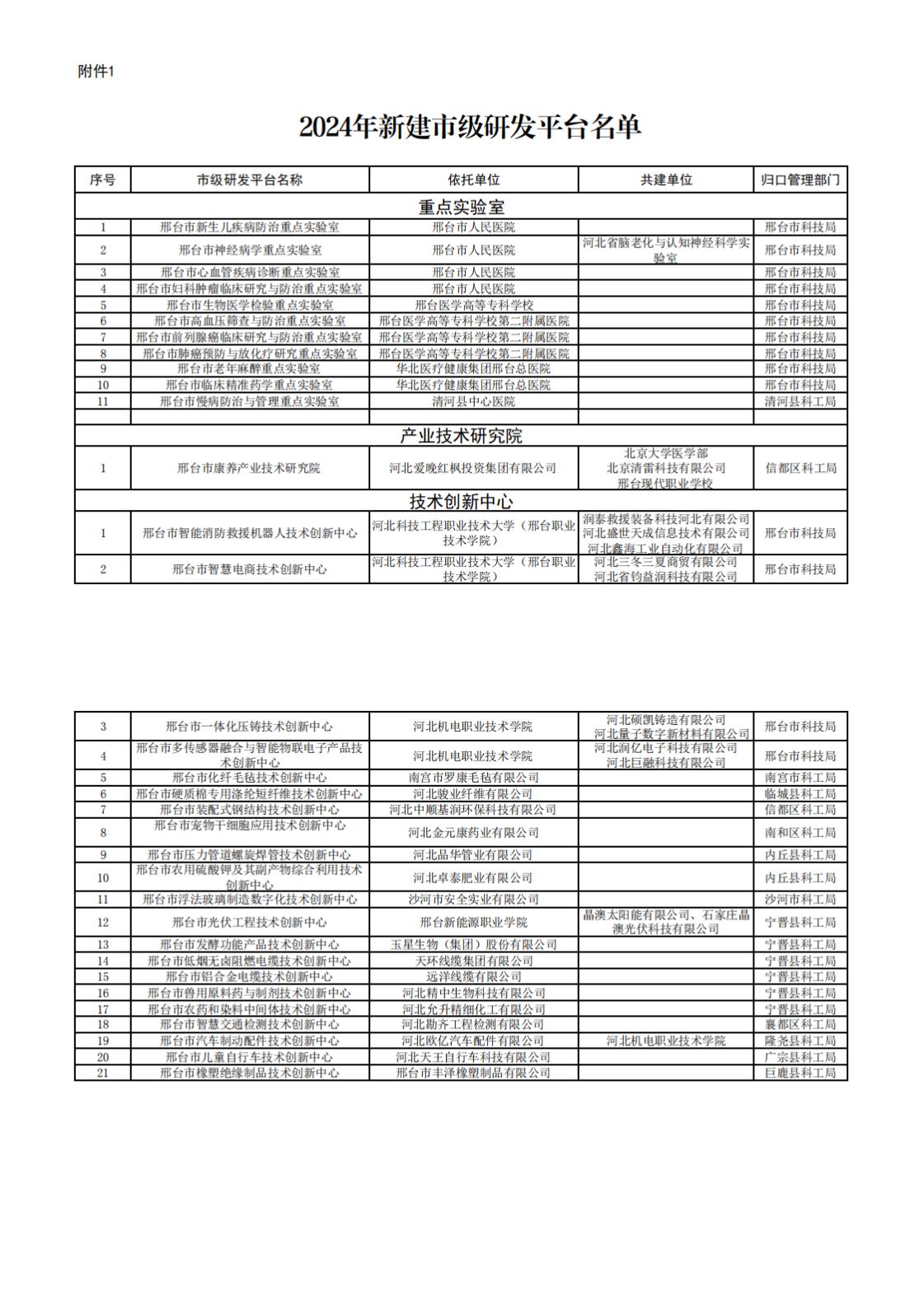 關(guān)于公布2024年新建邢臺市重點實驗室、產(chǎn)業(yè)技術(shù)研究院、技