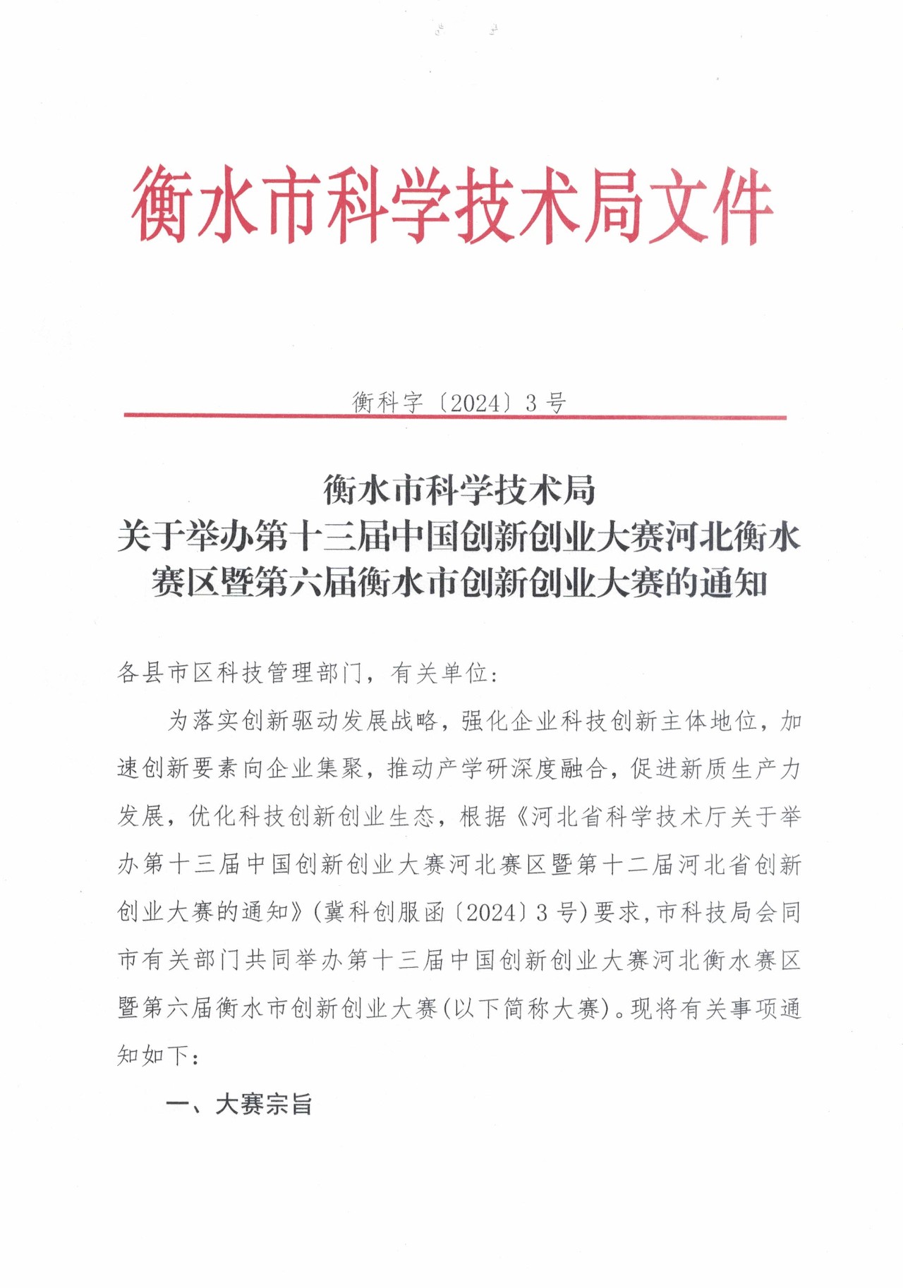 衡水市科學(xué)技術(shù)局關(guān)于舉辦第十三屆中國(guó)創(chuàng)新創(chuàng)業(yè)大賽河北衡水賽區(qū)暨第六屆衡水市創(chuàng)新創(chuàng)業(yè)大賽的通知