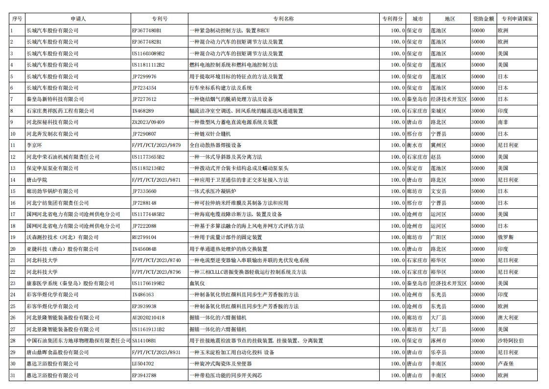 關(guān)于對(duì)2024年河北省專(zhuān)利擬資助項(xiàng)目的公示依據(jù)河北省市場(chǎng)監(jiān)督管理局、河北省財(cái)政廳印發(fā)的《河北省專(zhuān)利資助使用管理辦法》(冀市監(jiān)發(fā)〔2021〕